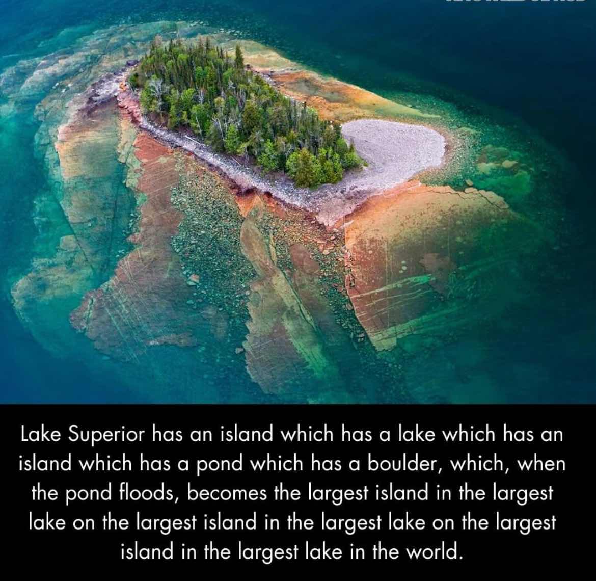 When the pond on Ryan Island floods, this boulder essentially becomes the smallest "island" on what could be considered the most layered island setting in the world. It’s an island within a lake, on an island within another lake, on the largest island in the largest freshwater lake on the planet. This layered structure is a fascinating example of how complex and unexpected nature can be. It’s like a natural nesting doll, showcasing the wonder of our world’s geography in a simple, yet mind-bending way.