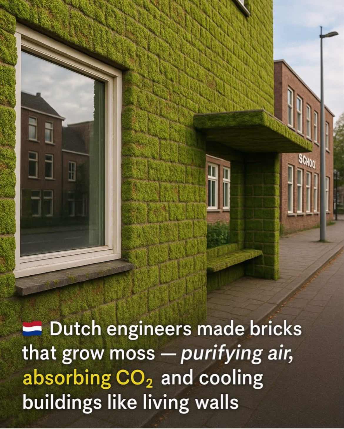 In the city of Leiden, schools and bus stops are being cloaked in moss — turning everyday walls into air-cleaning, climate-cooling ecosystems.